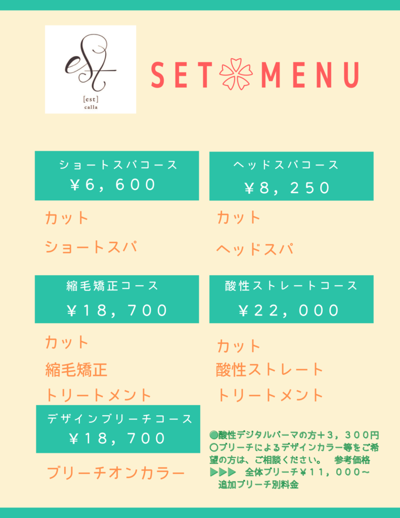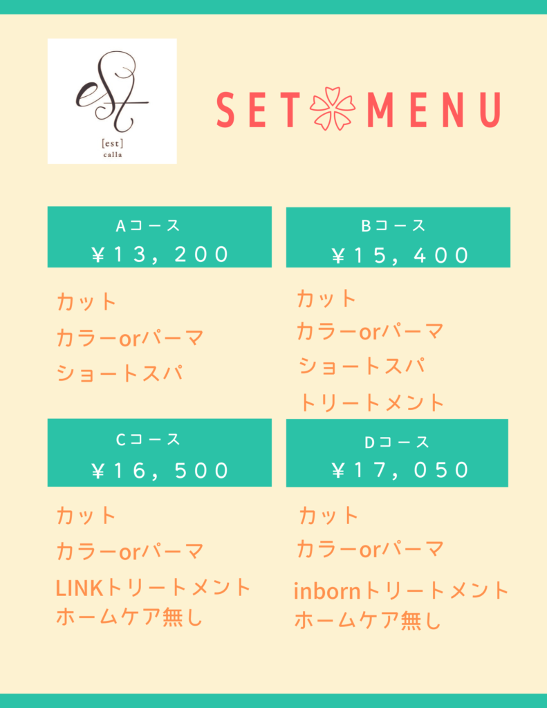 前回のご来店から2ヶ月以内でまたご来店頂いた方は、カット,カラー(ブリーチ除く)、パーマ・矯正メニューが定価から(セットメニュー、ホットペッパー予約は除く)10%オフ。