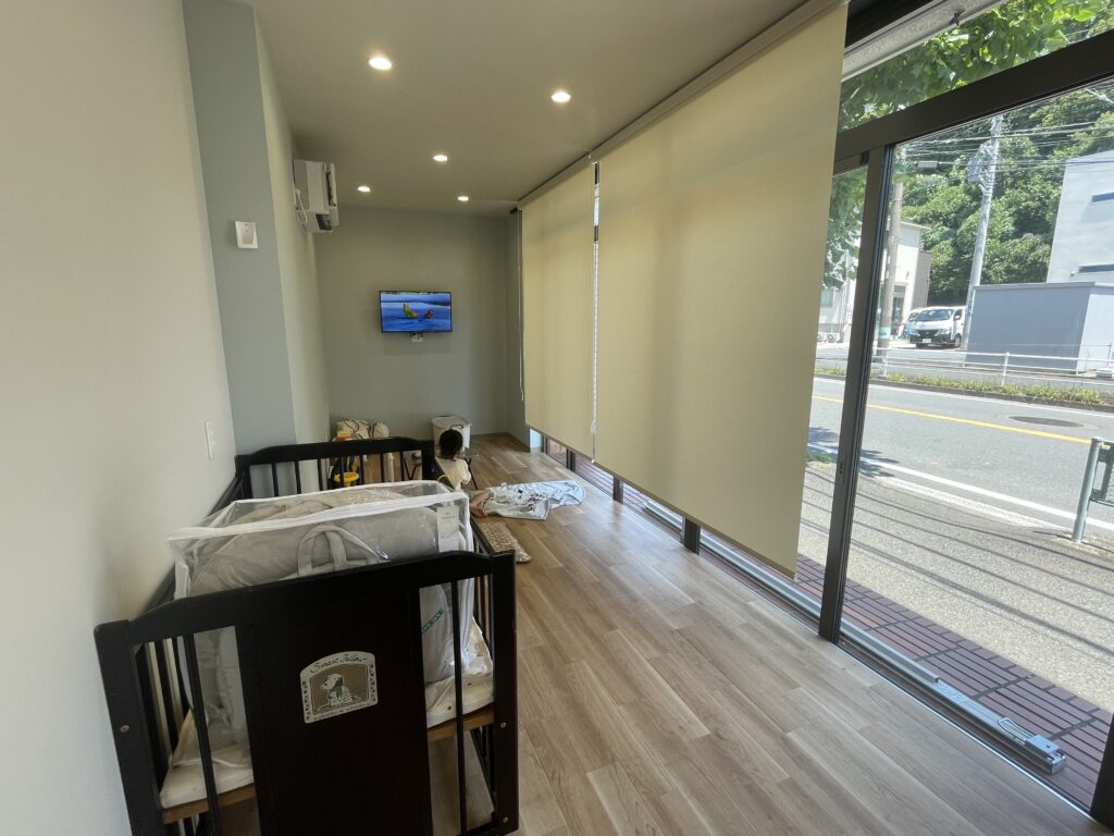 店舗内に託児室があるため、お子様の様子を見たり声が聞こえます。泣いてしまうと気になるかもしれませんが、専任スタッフは慣れていますので大丈夫です。9:30~16:00の間で予約制です。